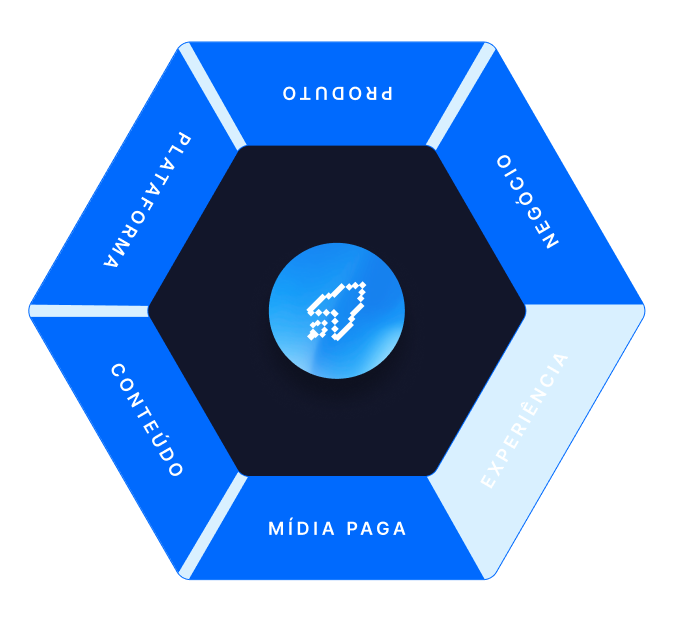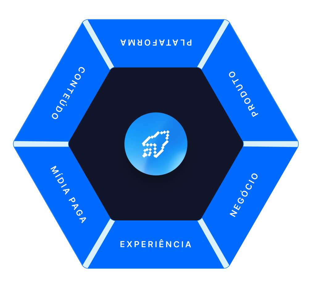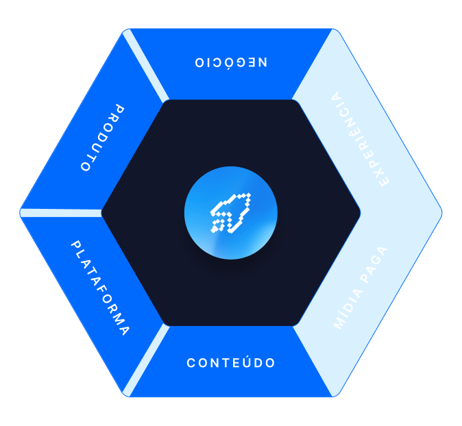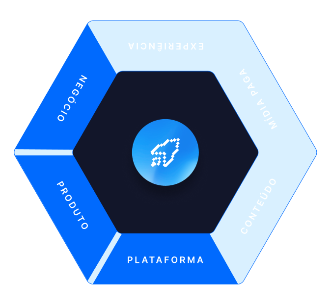 Alinhamento total entre produto, mídia e plataforma, criando uma jornada eficiente para o crescimento contínuo e sustentável.